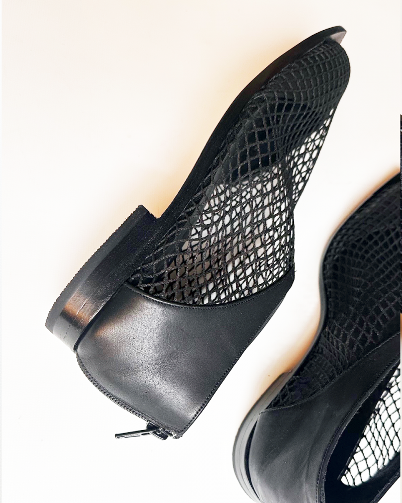 Realizado en 100% cuero vacuno combinado con tejido de red, que aporta ligereza y textura al diseño.